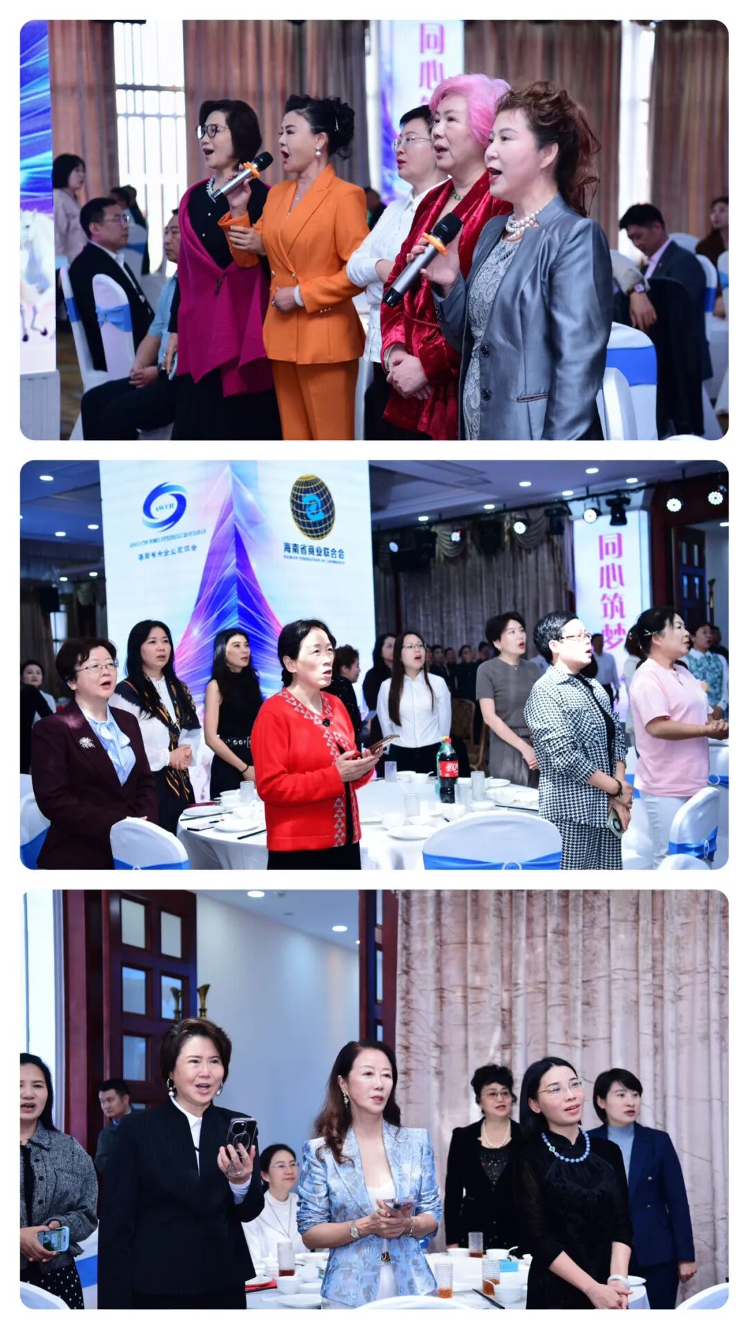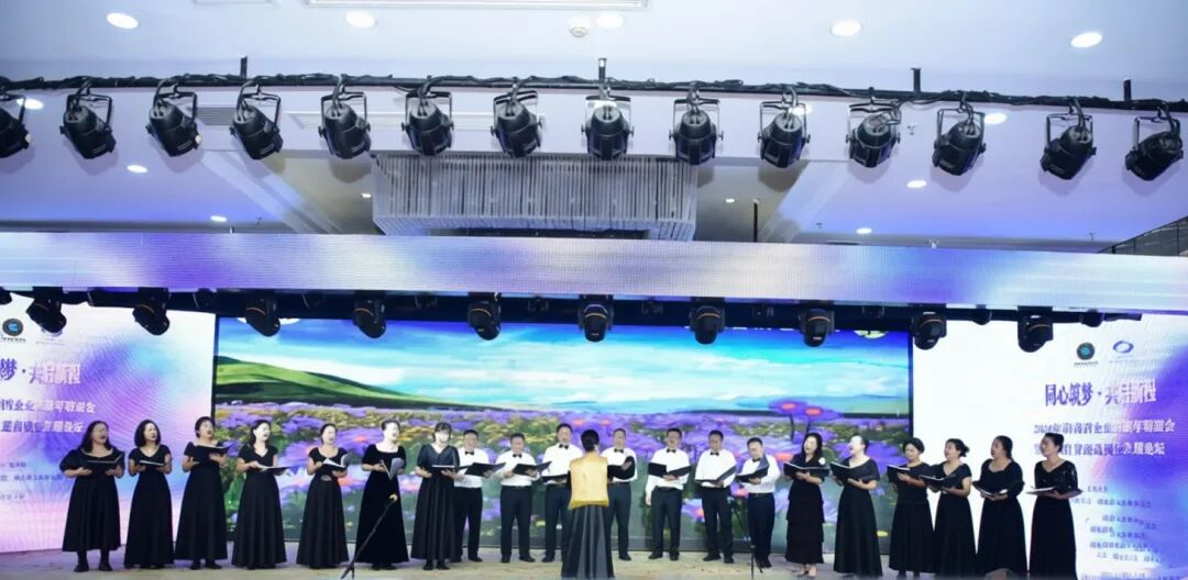 全体与会人员首先共同唱响《歌唱祖国》和《海南省女企业家协会会歌》,激昂的旋律在会场回荡。海南省女企业家协会会歌旋律优美、歌词奋发,不仅唱出了女企业家们“自尊、自信、自立、自强”的共同心声,更凝聚了协会的精神内核,展现了琼岛巾帼在自贸港建设浪潮中团结奋进、担当作为的时代风采。歌声汇聚成一种磅礴而温暖的力量,深深感染了现场每一位嘉宾。