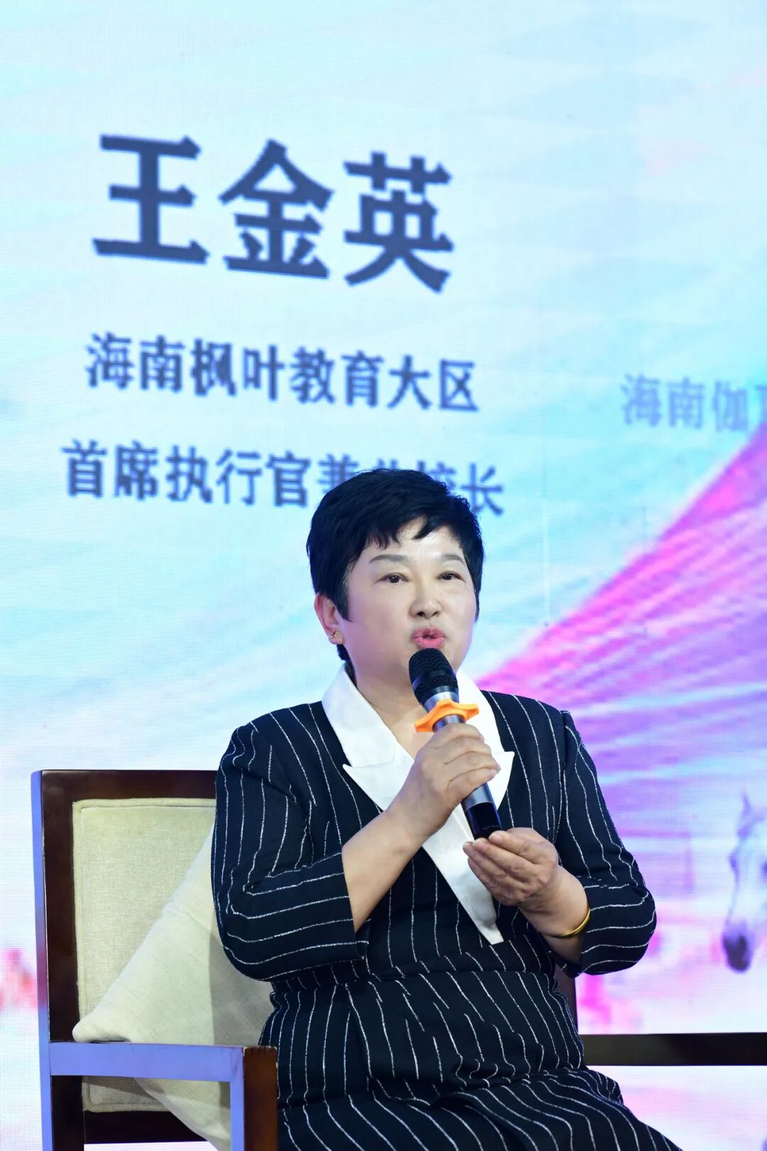 海南枫叶教育大区首席执行官兼总校长王金英从人才培养的根基出发,分享了打造国际顶尖教育机构的思考与实践。她强调,自贸港的未来取决于人才,而教育必须先行。